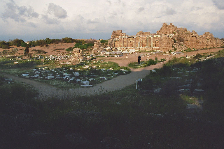 Wir liefen die ca. 2km von unserem Hotel am Strand entlang bis nach Side. Alle paar Meter standen Strandverkäufer, die einem frisch gepressten Orangensaft verkaufen wollten. Interessant zu beobachten war, daß je näher man Side kam (bzw. je weiter weg von den Hotels) um so billiger wurde der Saft. Er wurde jedoch an jedem Stand mit "very cheap" angepriesen.
