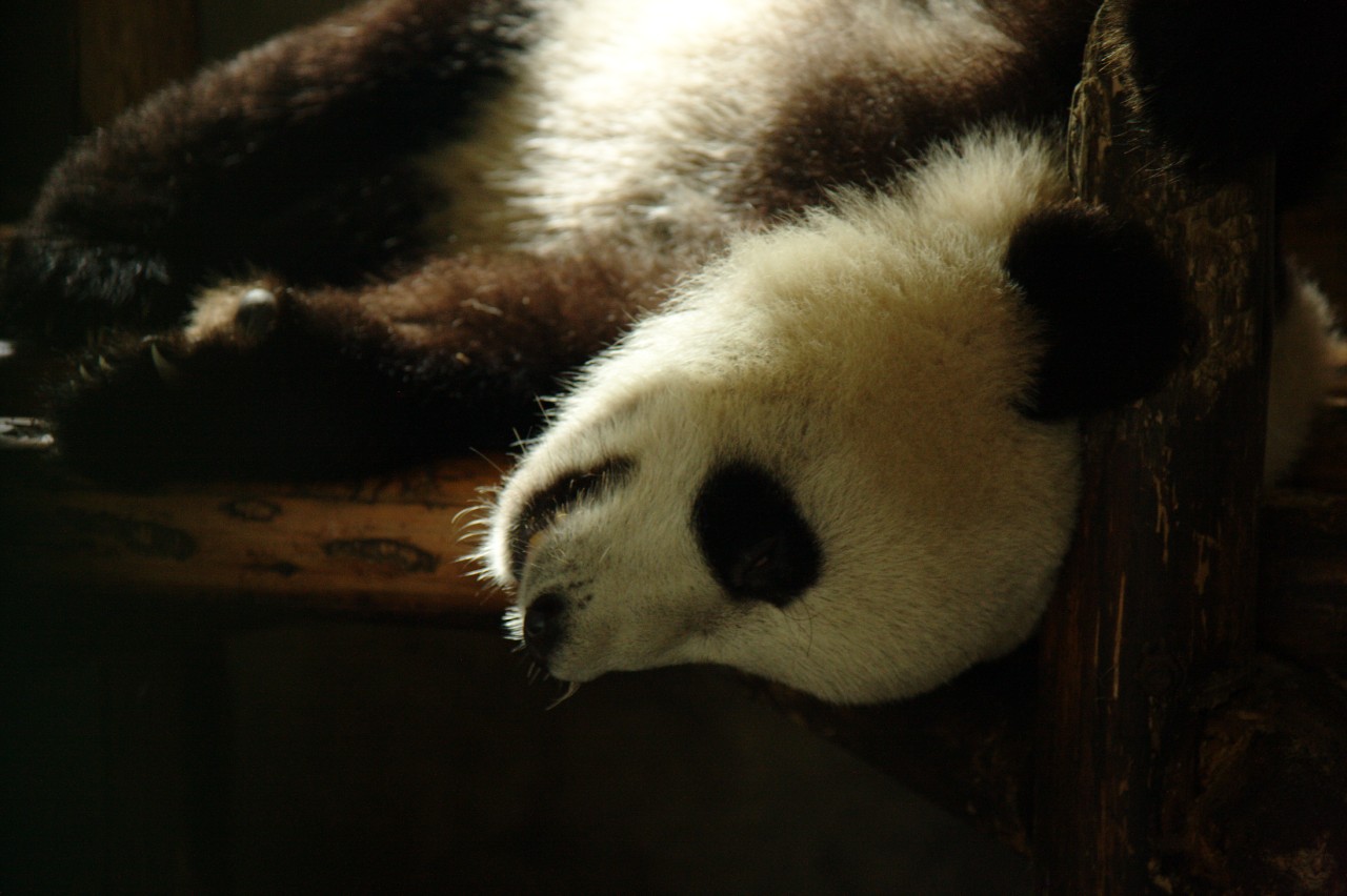Als erstes stand aber der Besuch der Pandaaufzuchtstation auf dem Programm. Die Pandastation selbst ist recht weitläufig und neben den klassischen Pandabären kann man da auch "rote Pandas" besichtigen. Den Pandas war es ebenfalls sichtlich zu warm, weswegen sie ausnahmslos in den klimatisierten Innengehegen vor sich hin dösten. Kein einziger Panda war in einem Freigehege zu sehen. Vom Zustand der Freigehege zu urteilen, muß dies auch schon einige Tage bis Wochen so gewesen sein.