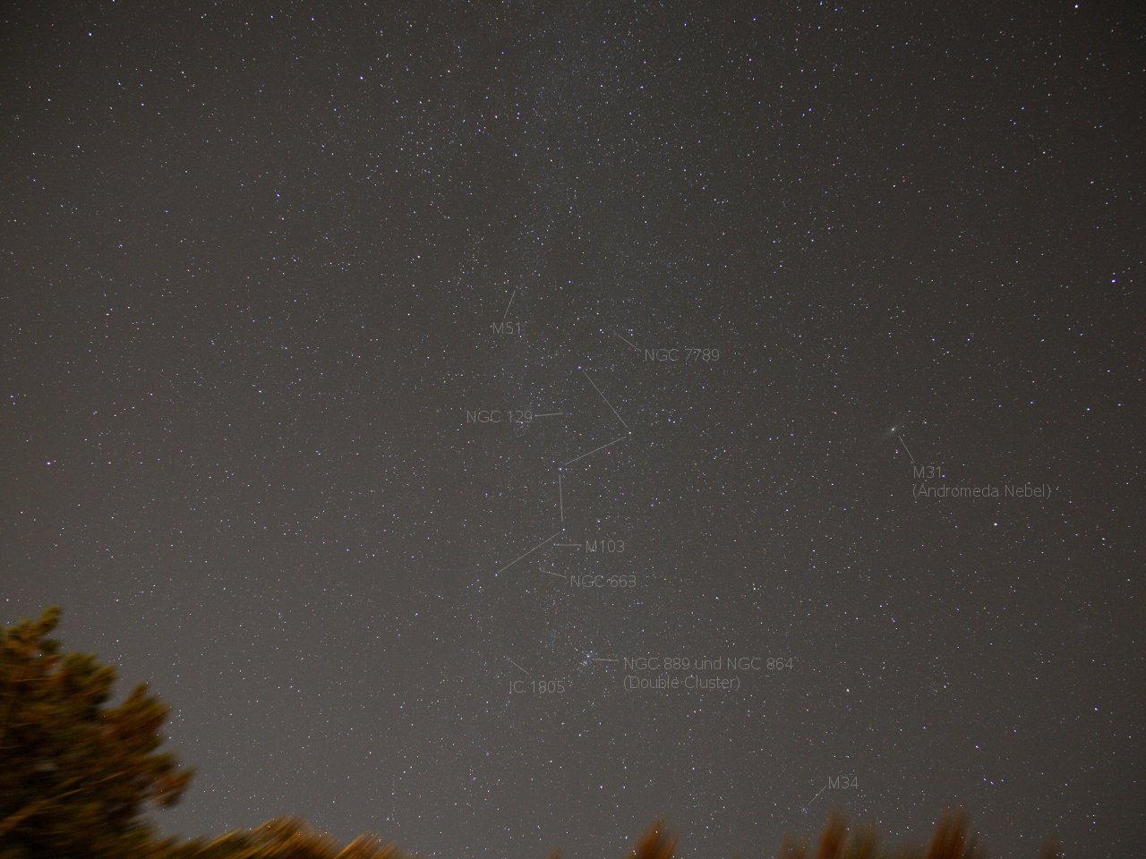 Mein 2. DeepSky-Bild. Dieses mal eine Weitwinkelaufnahme um Kassiopeia herum.