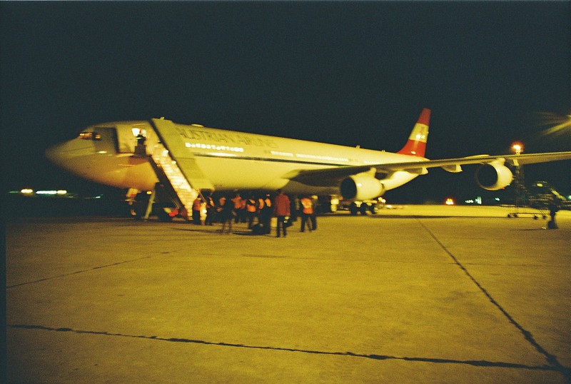 Der Flug mit der zu dem Zeitpunkt größten Passagiermaschine der AUA (Airbus A330-300) nach Lusaka war dann wieder ereignislos. Der Pilot gab der Maschine die Sporen, um die verlorene Zeit wieder aufzuholen. Die Piloten mußten vor dem Rückflug einige Stunden Ruhepause einhalten und der Sicherheitspuffer war nicht besonders groß. Gegen 3 Uhr (früh) landeten wir planmäßig auf dem Lusaka International Airport. Wir waren die einzige große Maschine, die zu diesem Ereignis nach Lusaka kam. Der Flughafen öffnete extra für uns 3 Stunden früher als üblich seine Pforten.