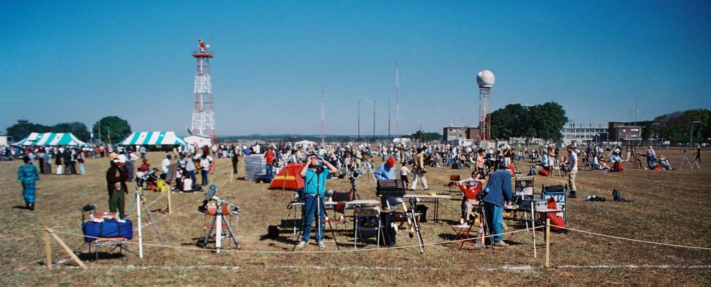 Die Organisation vor Ort war vorbildlich. Der Flughafen hatte ein spezielles Areal abgesperrt, damit wir ungestört unsere Geräte aufbauen und justieren konnten. Es wurde ein kleiner Markt aufgebaut, in dem die Händler allerlei touristische Souveniers anboten - zu Preisen, die vermutlich weit über den sonst üblichen Marktpreisen lagen. Weiterhin wurde ein kleines Kulturprogramm aufgeführt um die touristischen Klischees zu bedienen. Ein Highlight war auf jeden Fall der Besuch des damaligen sambischen Präsidenten. Er hatte es sich nicht nehmen lassen, das "seltsame Grüppchen" in Augenschein zu nehmen und auch mal selbst einen Blick durch eines der zahllosen Teleskope zu werfen.