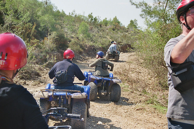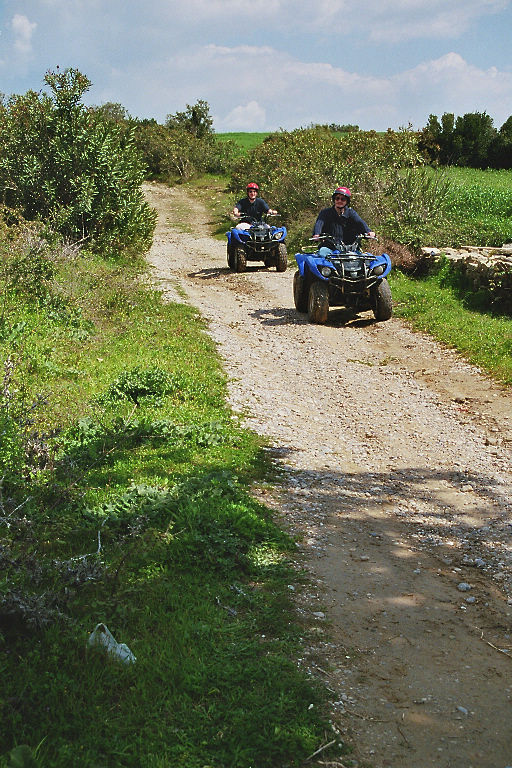 Fazit: Die Quads machen einen riesen Spaß, wenn man die Maschinen beherrscht. Ansonsten bergen sie ein enormes Verletzungsrisiko, wenn man es übertreibt. Der technische Zustand der Maschinen war auch alles andere als optimal. Die Vorderradbremsen waren so eingestellt, daß sie quasi keine Bremswirkung mehr hatten. Das sollte wohl verhindern, daß jemand in einer Panikreaktion die Handbremse voll durchzieht und dadurch ein Salto über den Lenker macht.