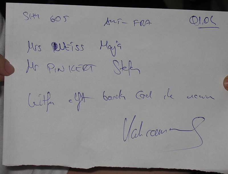 Natürlich gab es beim Check-In die vermutete Verwirrung, die nach einem kurzen Telefonat mit dem Service-Schalter geklärt werden konnte. Ich hatte nicht daran geglaubt, aber sie akzeptierten unser "Ticket".