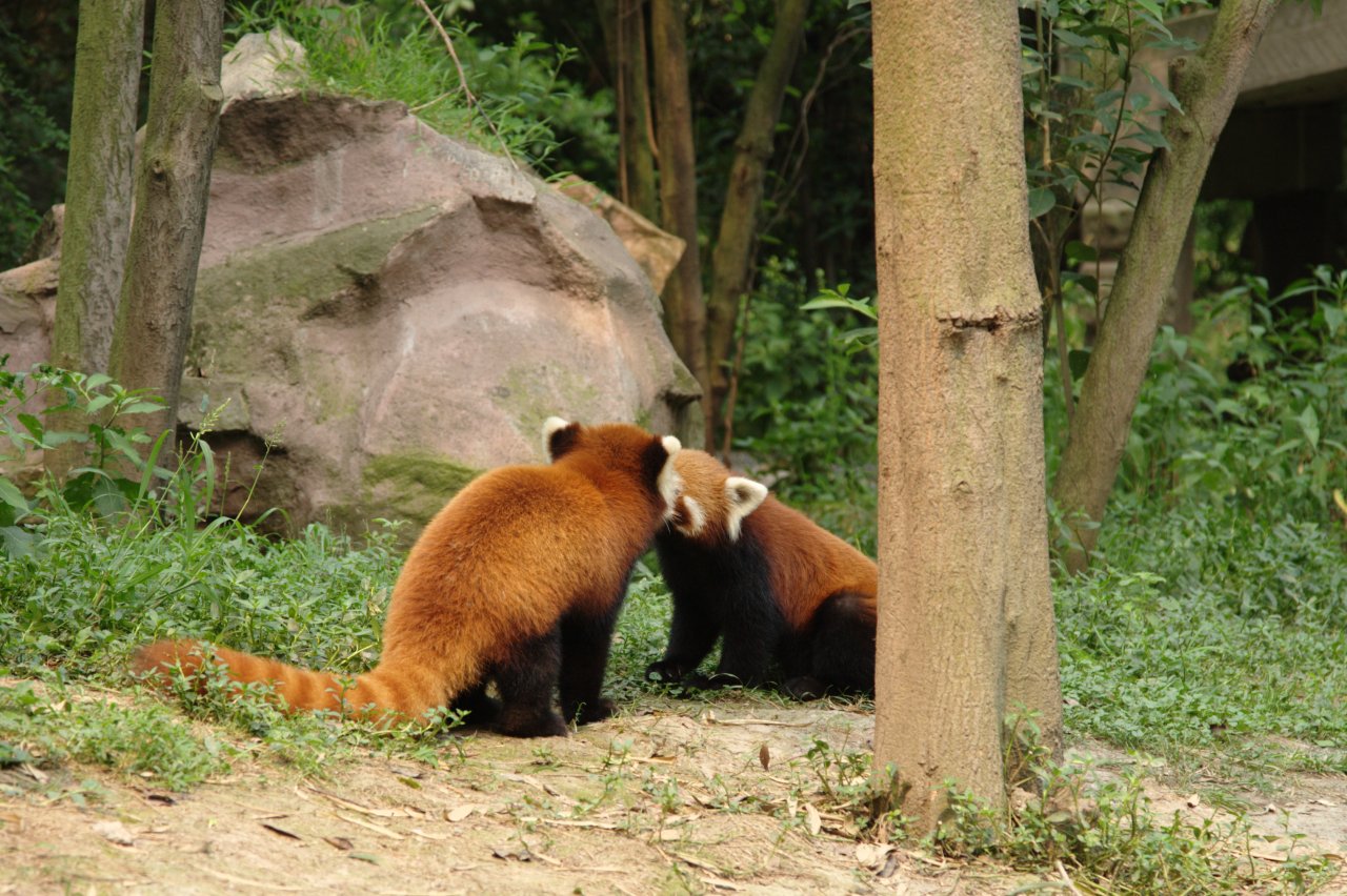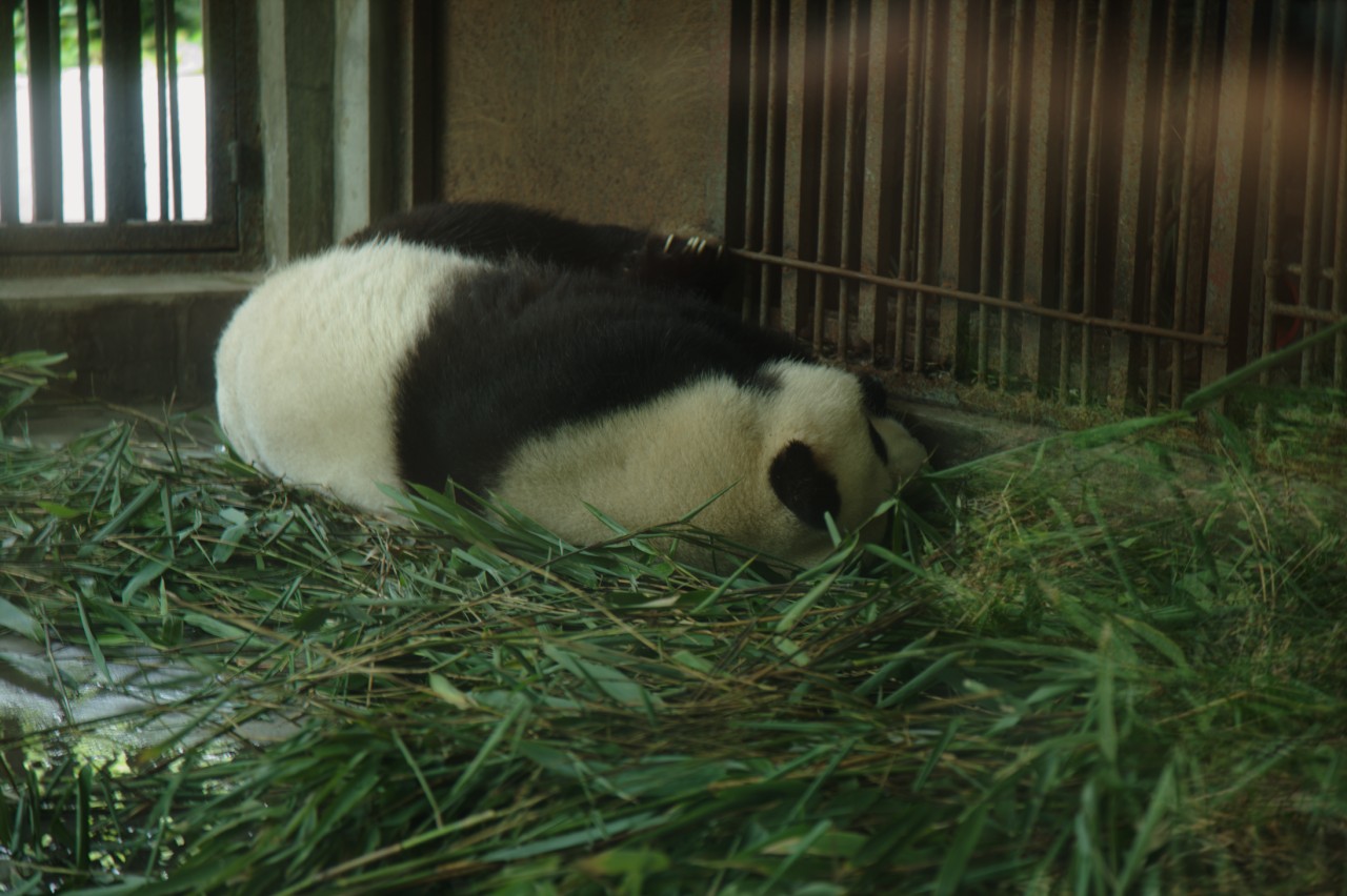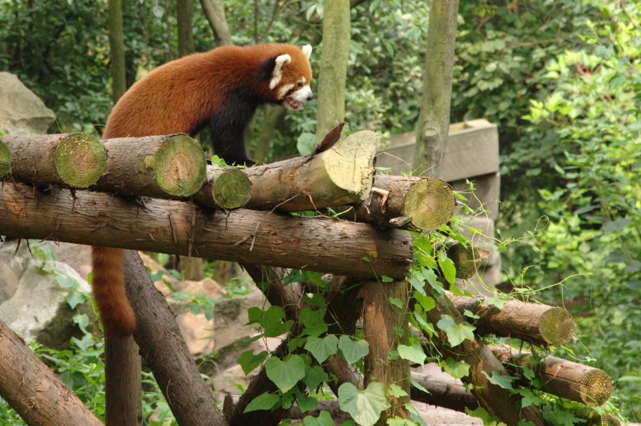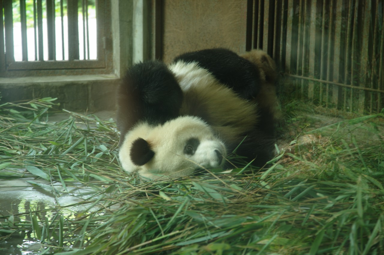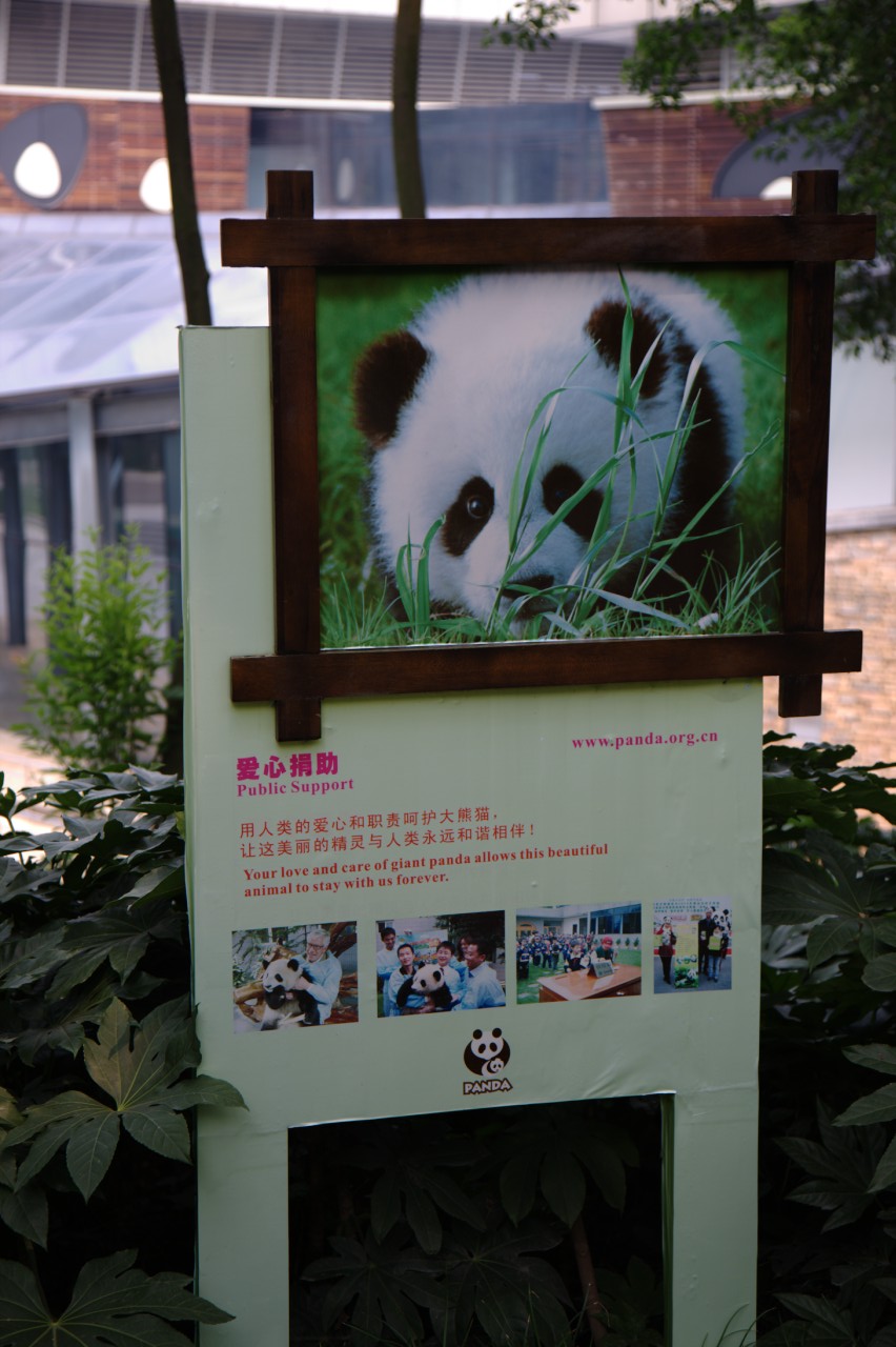 Als erstes stand aber der Besuch der Pandaaufzuchtstation auf dem Programm. Die Pandastation selbst ist recht weitläufig und neben den klassischen Pandabären kann man da auch "rote Pandas" besichtigen. Den Pandas war es ebenfalls sichtlich zu warm, weswegen sie ausnahmslos in den klimatisierten Innengehegen vor sich hin dösten. Kein einziger Panda war in einem Freigehege zu sehen. Vom Zustand der Freigehege zu urteilen, muß dies auch schon einige Tage bis Wochen so gewesen sein.